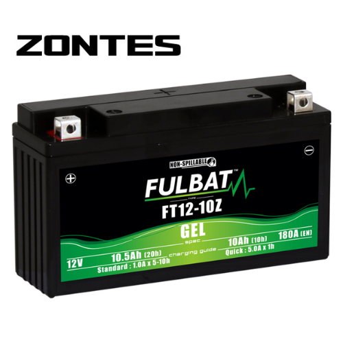 Batería para motos de la marca Zontes de cilindrada entre 125 y 350cc. Batería con tecnología AGM Sin mantenimiento y activada de fábrica (SLA).