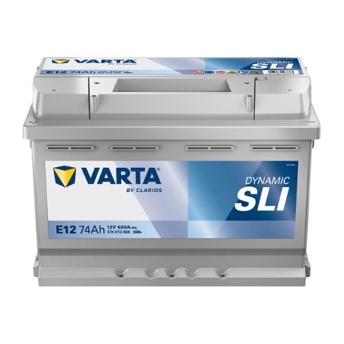 Batería VARTA E12 de 74 amperios y potencia de arranque de 680 A. Polo positivo IZQUIERDA.